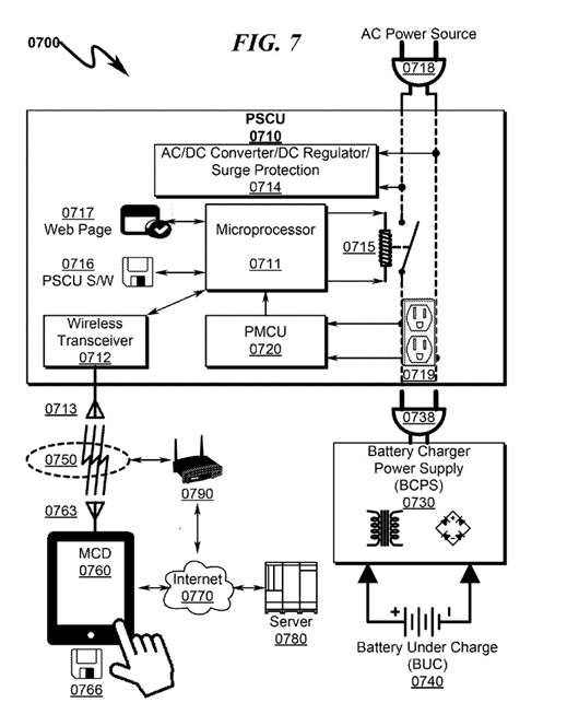 Im Gegensatz dazu offenbaren herkömmliche Techniken wie in D1 eine Stromquellensteuereinheit (PSCU 0710) für eine Batterieladegerät-Stromversorgung (BCPS 0730) für eine Batterie (0740), wobei die PSCU (0710) einen Stecker (0718), eine Buchse (0719), einen Schalter (0715) und einen Mikroprozessor (0711) umfasst, der das Ladeprofil des BCPS (0730) überwacht und den Schalter (0715) steuert (siehe Fig. 7 der D1: US20130214730A1).